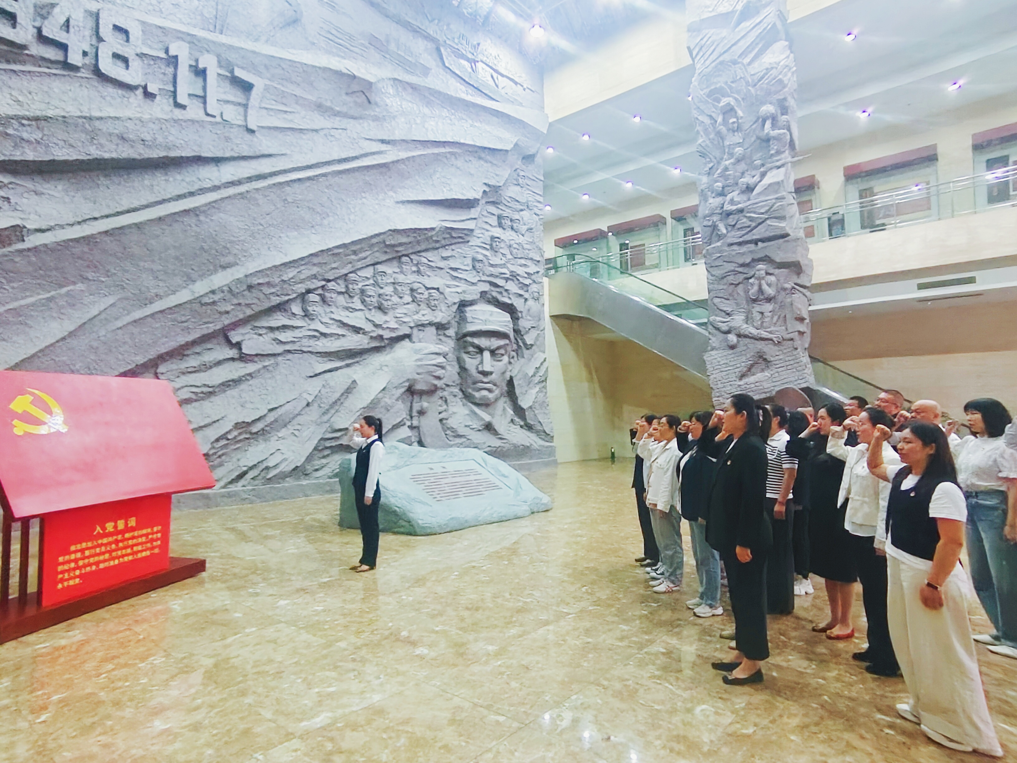 參觀接近尾聲,全體黨員在紀(jì)念館內(nèi)的黨旗前整齊列隊,舉起右拳莊嚴(yán)宣誓,重溫入黨誓詞。“我志愿加入中國共產(chǎn)黨,擁護(hù)黨的綱領(lǐng),遵守黨的章程……”鏗鏘有力的誓言回蕩在展廳內(nèi),不僅是對入黨初心的再次叩問,更是對傳承紅色精神、踐行使命擔(dān)當(dāng)?shù)泥嵵爻兄Z。