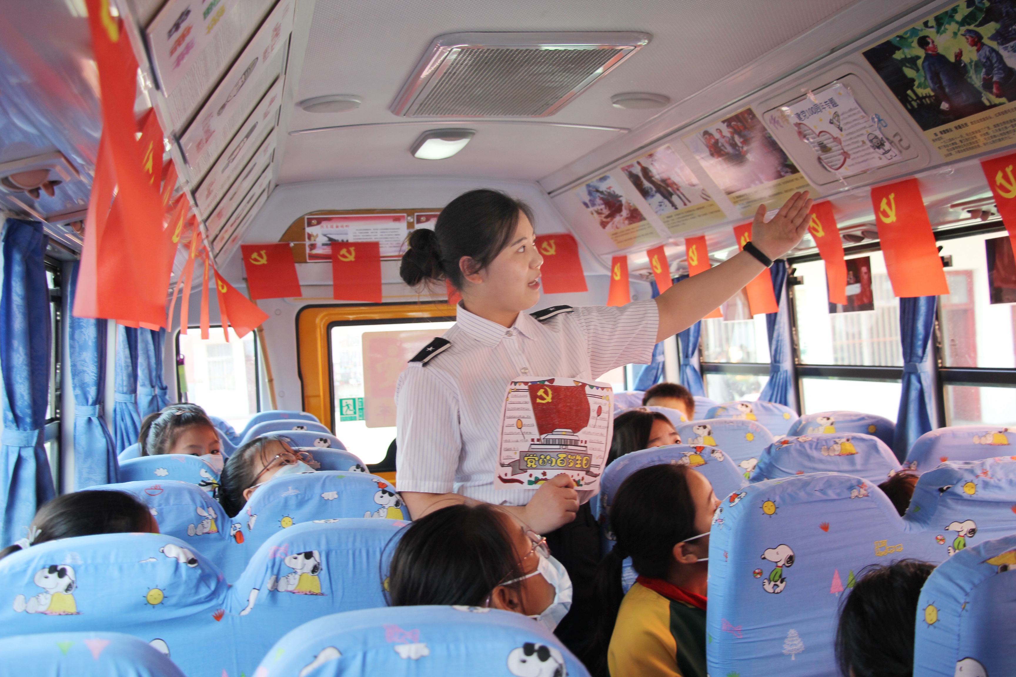 灌云欣達(dá)校車(chē)堅(jiān)持以校車(chē)為公益宣傳載體,精心策劃打造“流動(dòng)黨史車(chē)廂”,將校車(chē)打造成為孩子們黨史學(xué)習(xí)教育的生動(dòng)課堂。為營(yíng)造黨史學(xué)習(xí)氛圍,激發(fā)孩子們學(xué)習(xí)黨史的熱情,灌云欣達(dá)校車(chē)結(jié)合實(shí)際,將主題車(chē)廂設(shè)計(jì)得活潑、新穎,好似流動(dòng)的黨史知識(shí)課堂,讓孩子們眼前一亮。校車(chē)內(nèi)不但有黨史書(shū)籍,畫(huà)報(bào)等供孩子們閱讀,還不定期邀請(qǐng)黨員隨車(chē)開(kāi)展黨史講座,真正將校車(chē)車(chē)廂打造成傳播黨史文化、開(kāi)展黨史宣傳教育的流動(dòng)課堂。