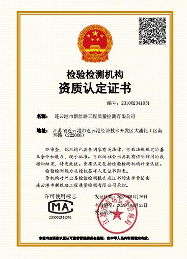 近日,江蘇海建新絲路檢測(cè)公司申報(bào)的檢驗(yàn)檢測(cè)機(jī)構(gòu)資質(zhì)認(rèn)定,經(jīng)江蘇省市場(chǎng)監(jiān)督管理局核準(zhǔn),換證成功并取得證書(shū)。