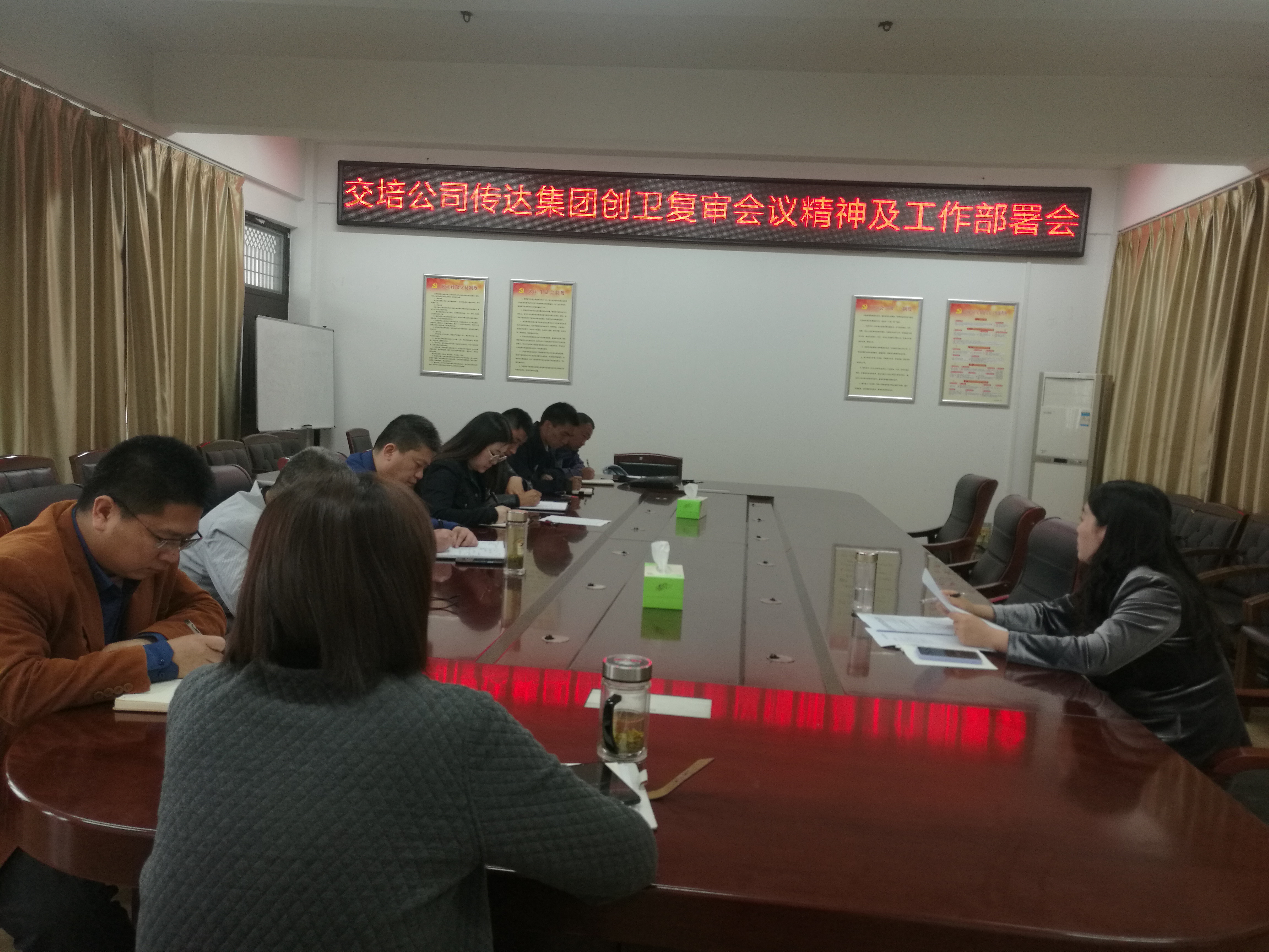 5月12日下午,交培公司召開傳達(dá)集團(tuán)迎接國家衛(wèi)生城市復(fù)審工作推進(jìn)會(huì),會(huì)議傳達(dá)了集團(tuán)創(chuàng)衛(wèi)復(fù)審工作推進(jìn)會(huì)精神,公司領(lǐng)導(dǎo)、中層干部參加會(huì)議。