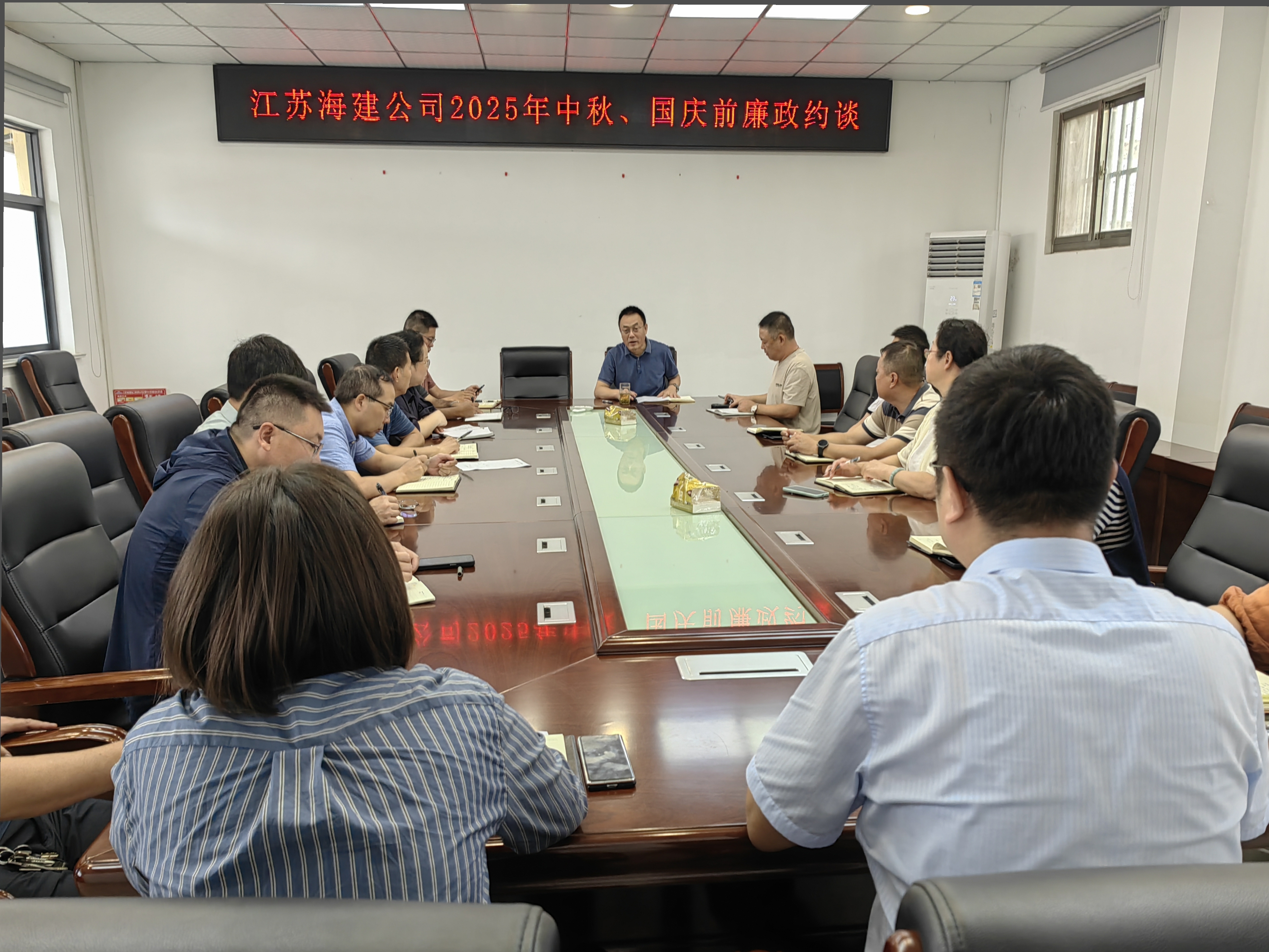 中秋、國慶“雙節(jié)”將至,為營造風清氣正的節(jié)日氛圍,強化節(jié)日期間的黨風廉政建設,9月16日上午,江蘇海建公司召開中秋、國慶節(jié)前廉政約談會議,公司黨委書記、董事長于振國作節(jié)前集體廉政談話,公司領導班子及公司中層正職干部參加會議。