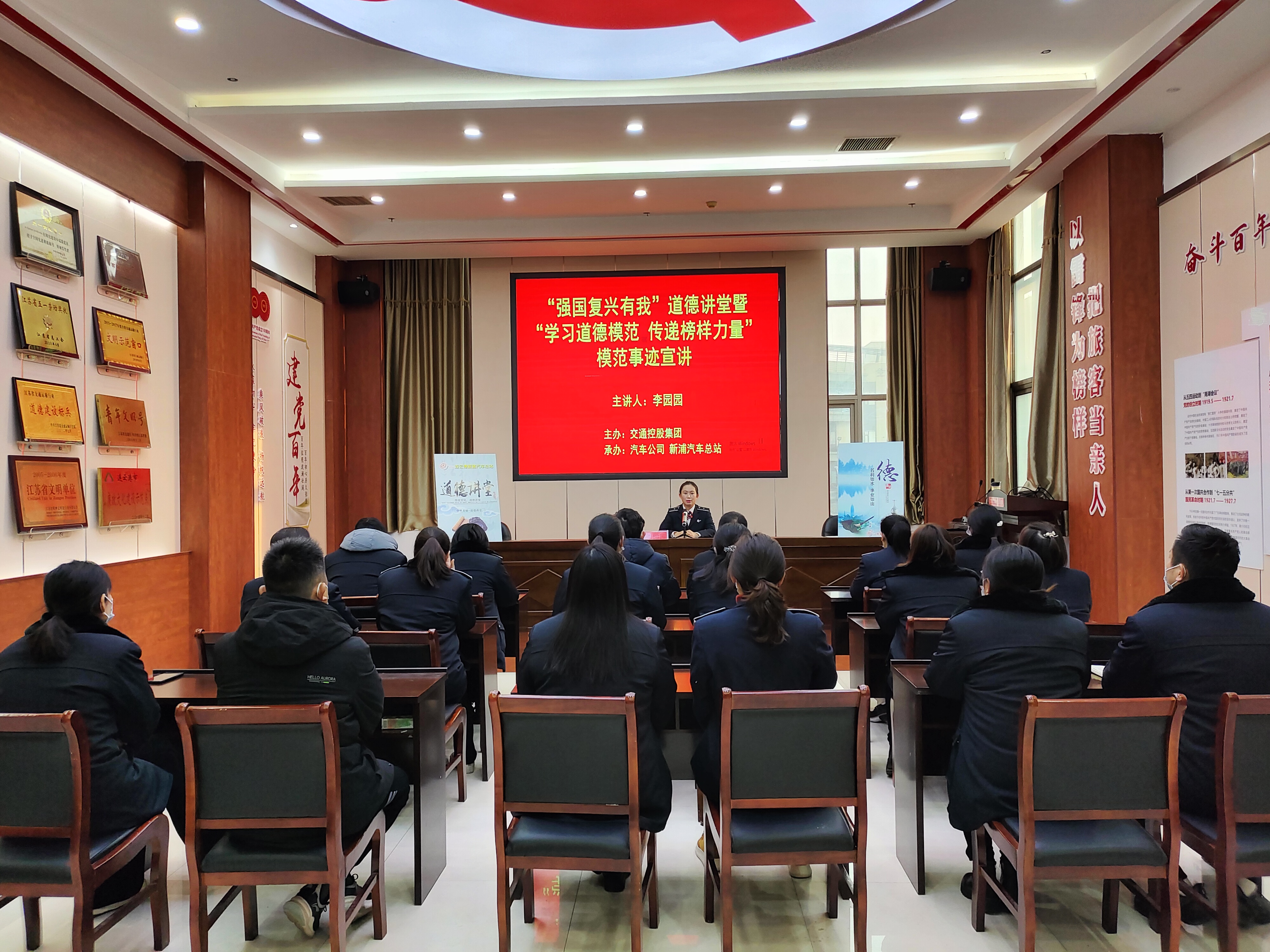 為認(rèn)真落實“強(qiáng)國復(fù)興有我”道德講堂暨“學(xué)習(xí)道德模范 傳遞榜樣力量”主題宣傳教育活動,12月7日下午,由交通控股集團(tuán)主辦,汽車公司、新浦汽車總站承辦的道德模范進(jìn)講堂活動在新浦汽車總站二樓黨員會議室開講?;顒友埵形逡粍趧营?wù)芦@得者、第六代“雷鋒車”手李園園宣講,公司領(lǐng)導(dǎo)班子及干部職工代表30余人參加活動。