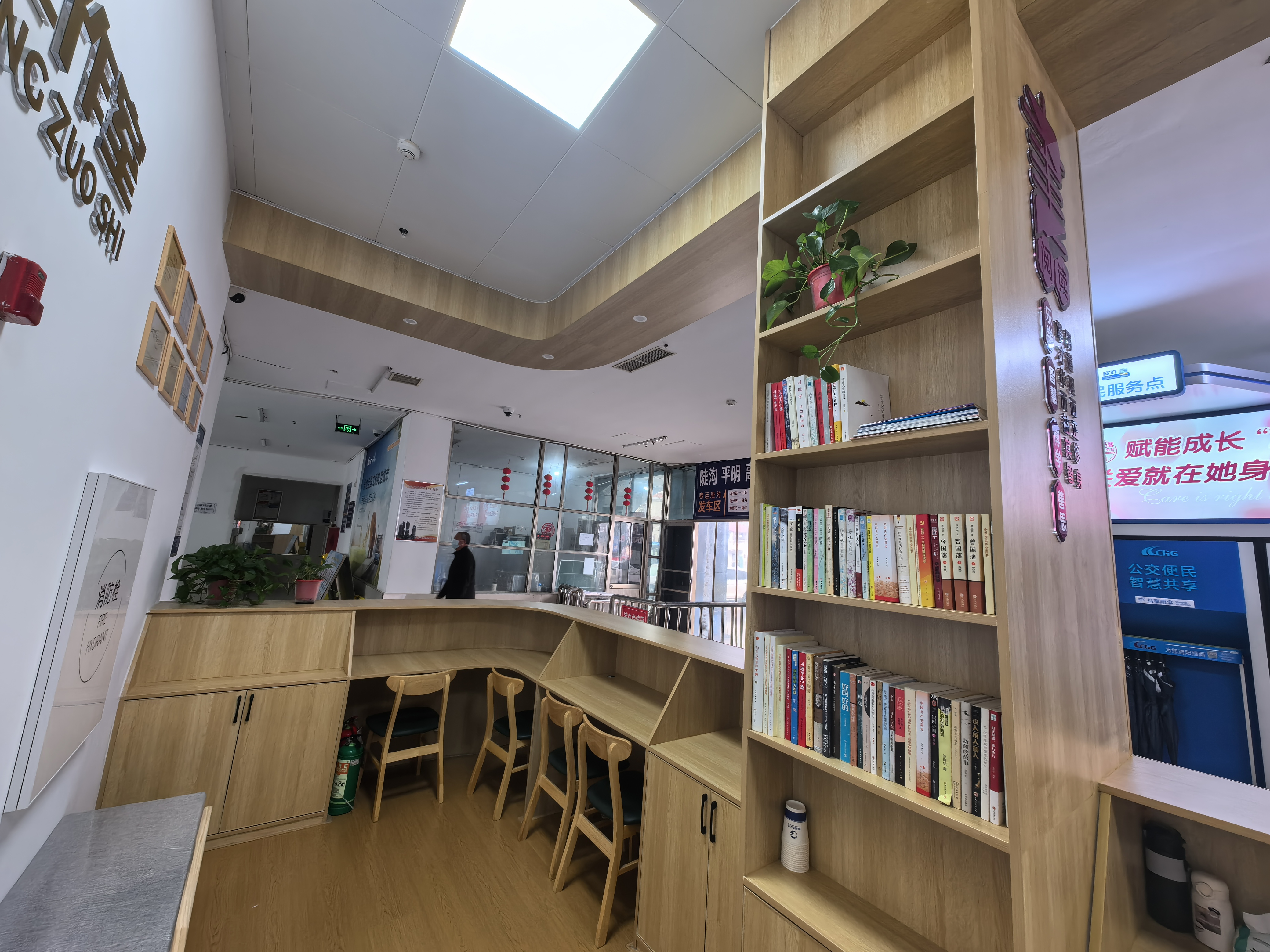 快速公交事業(yè)部共有女職工134名,其中站務(wù)員占84名,她們熱心服務(wù)乘客,為企業(yè)贏得信譽。她們敬業(yè)愛崗,在重大活動和惡劣天氣的運輸保障中,發(fā)揮著“半邊天”的力量。為凝聚女職工,關(guān)愛女職工,夯實品牌建設(shè),公交集團以海州客運站為陣地,集“服務(wù)、學(xué)習(xí)、心理疏導(dǎo)、健康普及、法律宣傳”等服務(wù)功能為一體,進入海州客運站,金色拉絲“BRT馨驛站工作室”赫然醒目,一幅幅榮譽獎牌如同禮兵守護在側(cè)。溫馨的原木色吧臺將大廳劃分為兩個部分,東側(cè)主要是面向女職工服務(wù)的“康乃馨服務(wù)站”,墻面展示著女職工“五護”、專家服務(wù)團隊介紹、站務(wù)員工作風(fēng)采等內(nèi)容。為聽取女職工的建議與心聲,特地設(shè)置了“回音壁”一欄。為充分利用有限的空間,立柱背面做了書柜形成讀書角,便于女職工隨時閱覽。