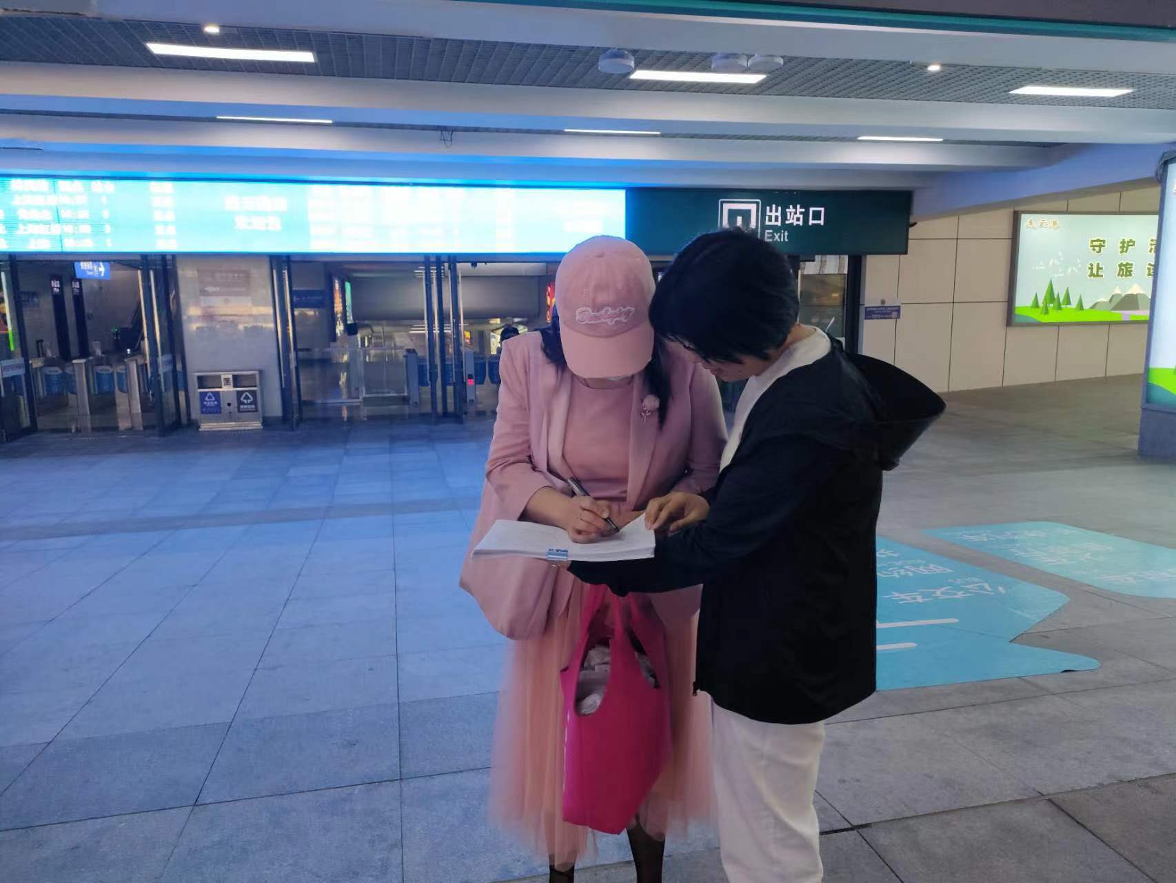 此次調(diào)查問卷以旅客整體評價、基礎(chǔ)配套及服務(wù)設(shè)施、管理水平及服務(wù)質(zhì)量為主,共設(shè)置了12個題目,題目類型涵蓋封閉式單項以及可以開放式回答的建議和意見等?;顒悠陂g,工作人員積極引導(dǎo)市民填寫調(diào)查問卷,累計發(fā)放調(diào)查問卷100余份。其中來高鐵站接待朋友的市民戚女士主動填寫調(diào)查問卷,并向工作人員說到,作為老港城人,她對連云港交通的發(fā)展變化頗有體會。自從高鐵開通以后,不管是自家人出遠門,還是外省的朋友來玩,首先考慮的出行方式肯定是高鐵,每次開著私家車都停放在地下停車場。而說到服務(wù)方面,戚女士表示,對現(xiàn)在停車場各種服務(wù)都感到滿意,“引進了智能系統(tǒng)以后,不管是尋車、自助繳費,都很方便,到了場內(nèi),各種指示牌非常顯眼,到處都是保安師傅,態(tài)度都很好!”
